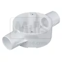 Marshall Tufflex round PVC conduit angle box for use with Round Rigid PVC White Conduit.
